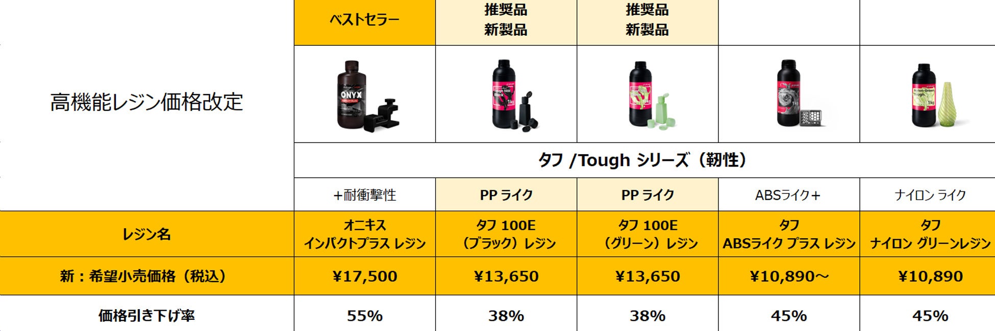 Phrozenは、高品質やアフターサービスの安心感といった付加価値を維持しつつ、お客様がお求めになりやすい価格に大幅値下げを実施し、3Dプリンターの活用に慎重な日本市場を元気にしていきたいと考えています。製造業などの産業用分野から日本の強みであるアニメやフィギアなど独自文化を発信するコンシューマー・個人に至る幅広い層に向けて、進化した3Dプリンターや高機能レジンの良さを啓蒙し、導入の価格的ハードルを下げ、共に成長していくことを目指してまいります。