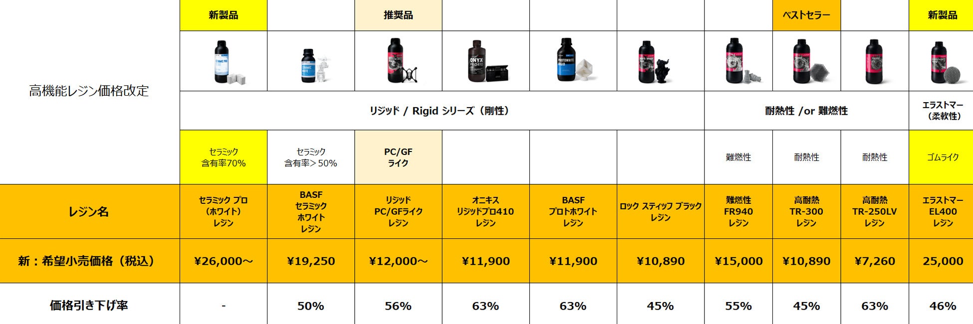 Phrozen社の本体・材料マテリアル・消耗パーツの価格を抜本的に値下げすることとなりました。