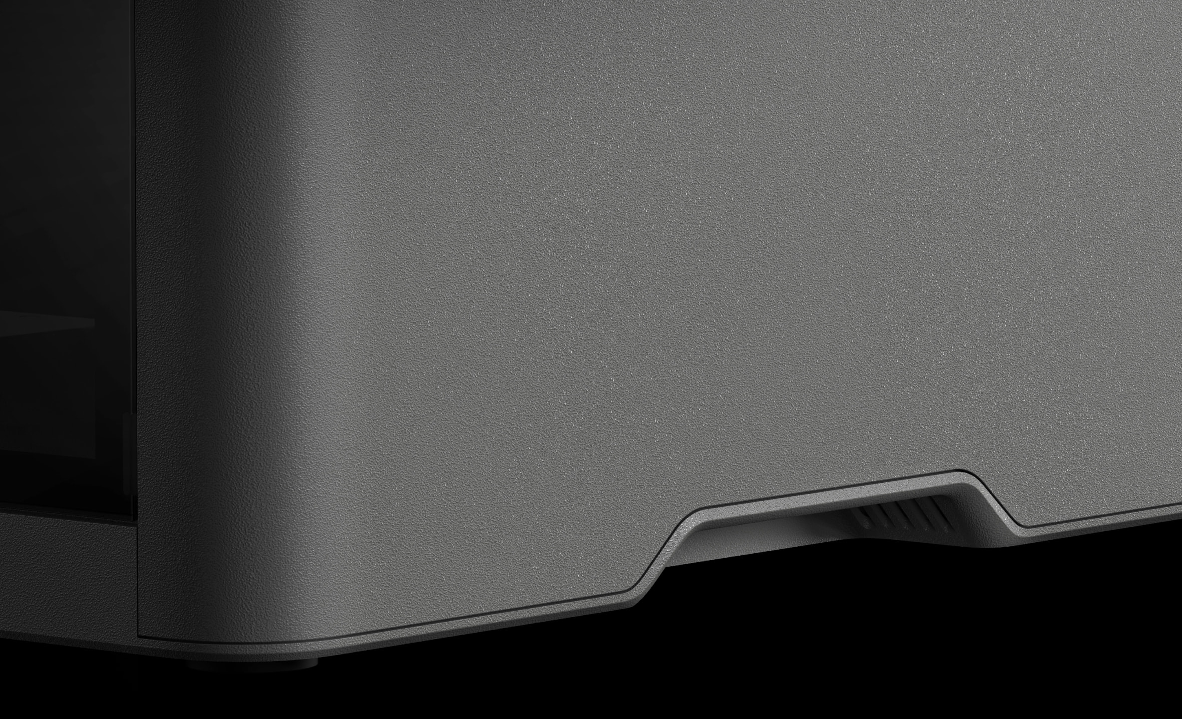P2Sは、フラップ制御のアダプティブエアフローシステムを搭載しており、チャンバー内の熱を効率的に密閉すると同時に、高性能カーボンフィルターを通して内部の空気を積極的に濾過します。これにより、作業スペース内のクリーンで安全な空気を維持しながら、反りが発生しやすい高難度のエンジニアリングフィラメントを安心してプリントできます。