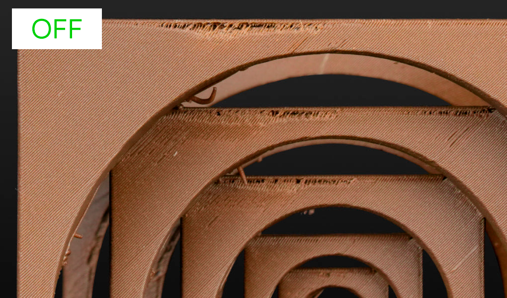 アダプティブエアフローシステムは、チャンバー外から直接冷気を取り込み、冷却効率を大幅に向上させます。これにより、オーバーハング品質の低下やノズル詰まりのリスクを回避しながら、ドアを閉めた状態でも低温フィラメントをプリントできます。