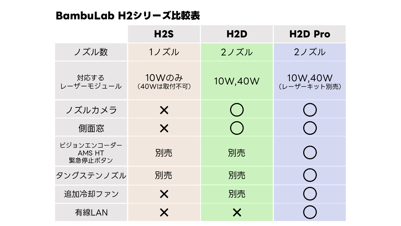 ※H2Sは40Wレーザーには非対応です。ヘッドを追加で購入しても対応しません。