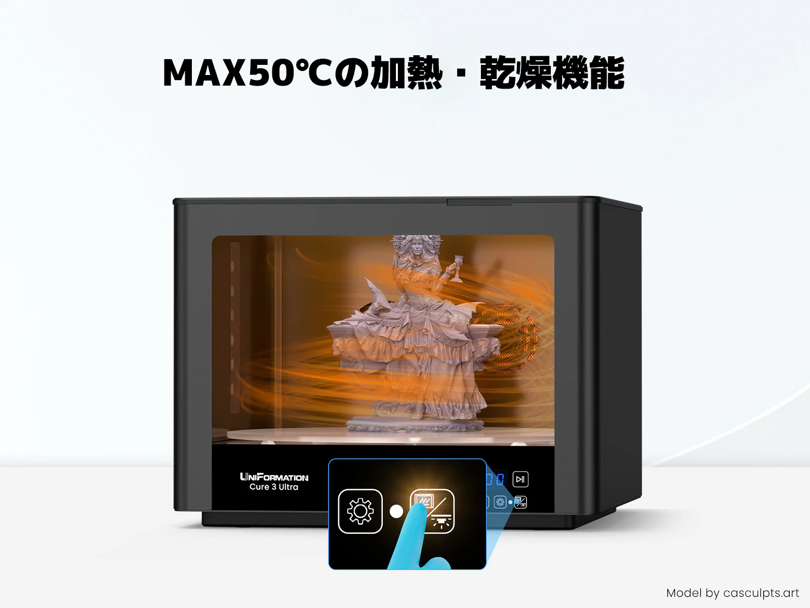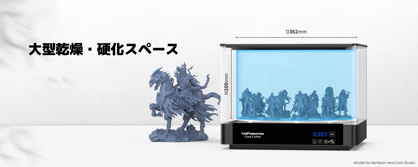 Φ362mm、高さ200mmの大型乾燥・硬化スペースを備えます。