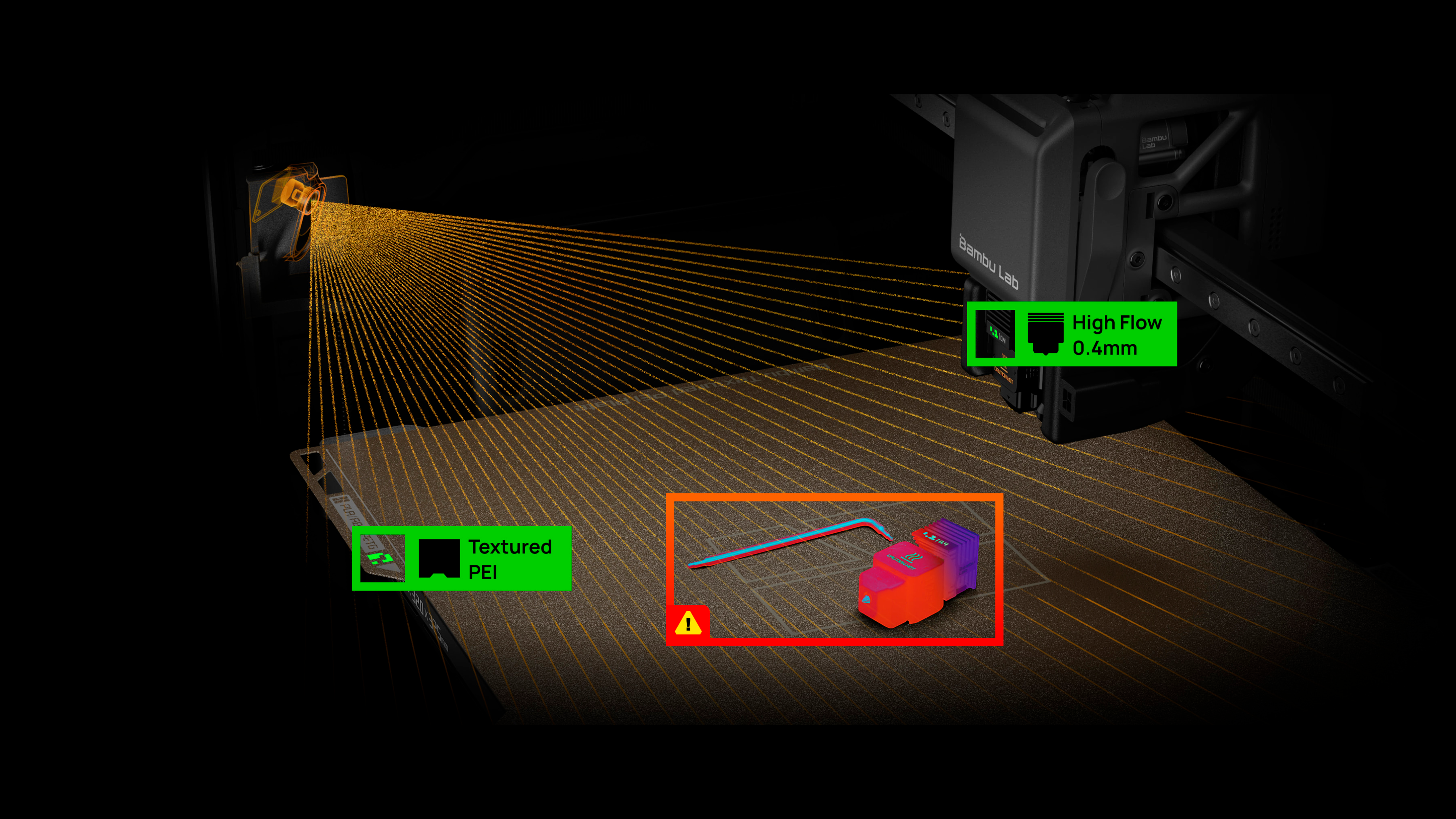 さらに、Bambu Lab独自のサーボアーキテクチャは20kHzで抵抗と位置をサンプリングし、フィラメントの摩耗や詰まりをリアルタイムで能動的に検出します。