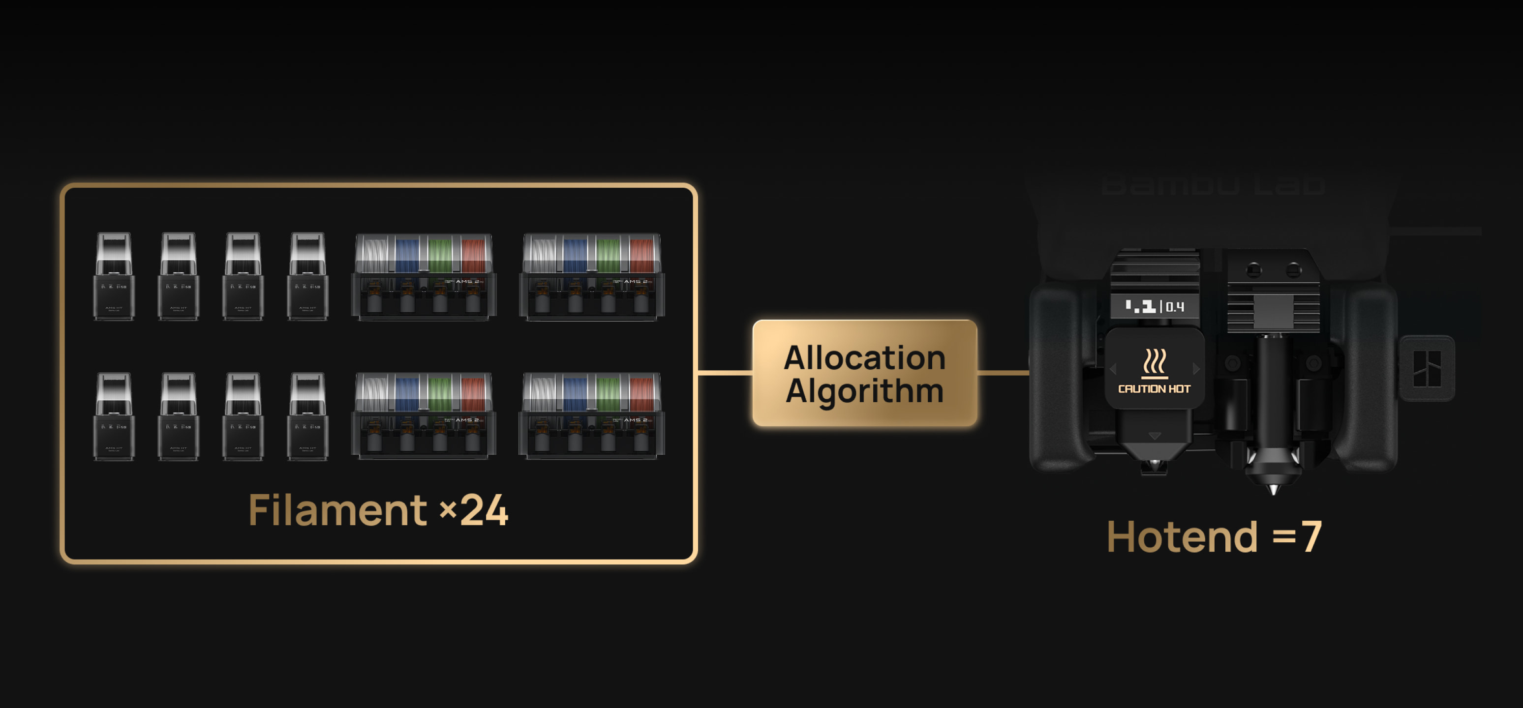 さらに、インテリジェントなアルゴリズムがフィラメントとホットエンドの割り当てを最適化し、