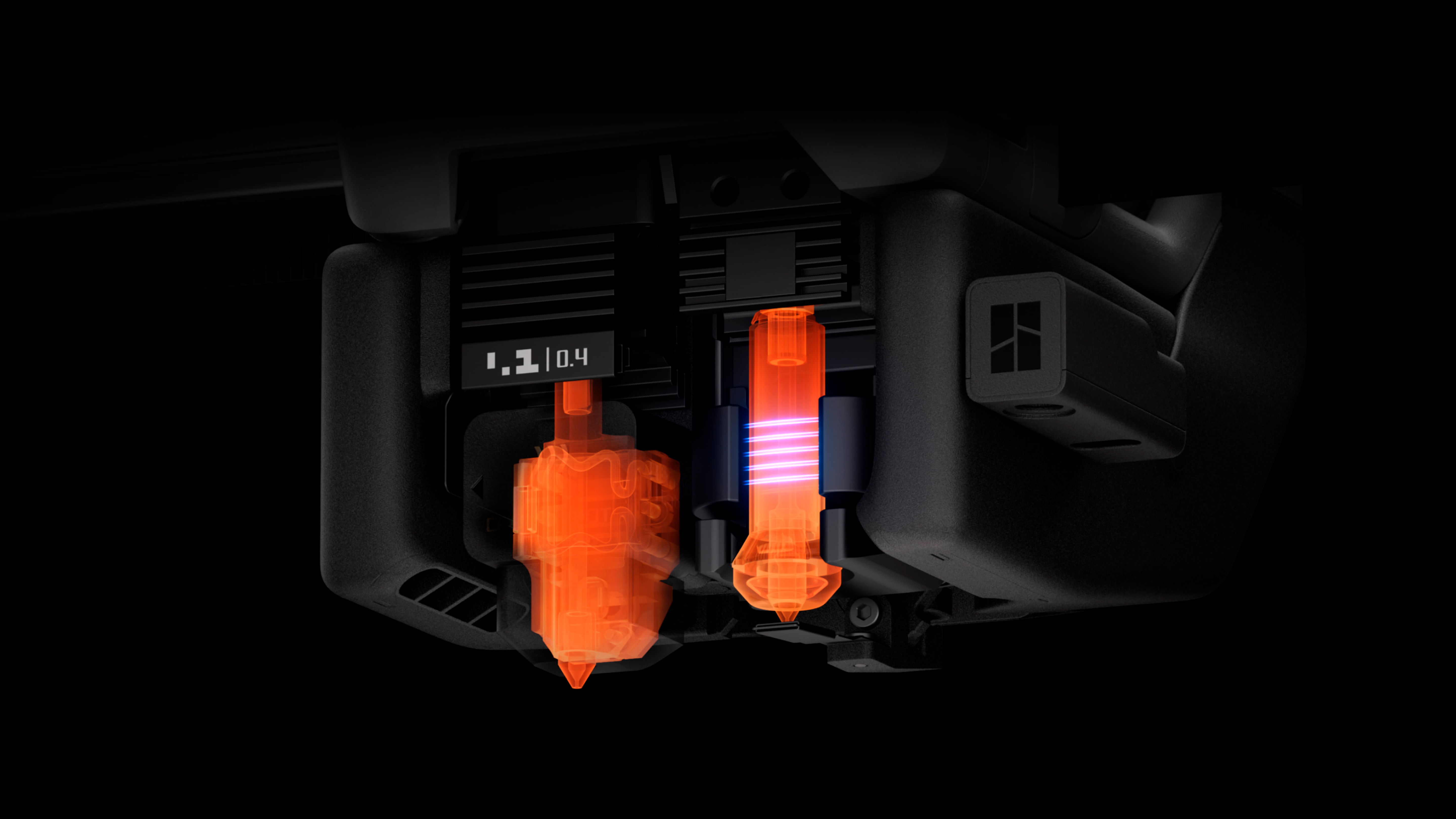 各ホットエンドはフィラメント情報を自動的に保存できるため、次回同じ材料をロードする際には、適切なホットエンドが瞬時に選択されます。
