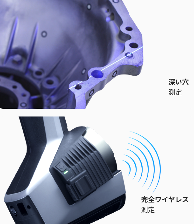KSCAN-Xは、類似製品と比較して、よりコンパクトで軽量な設計となっています。短いベースラインと深穴探知専用の青色レーザーラインを備え、パイプ内部やギアの歯など、アクセスが困難な箇所の探知に優れており、アクセスが困難な箇所でも完全かつ正確なデータ収集を実現します。